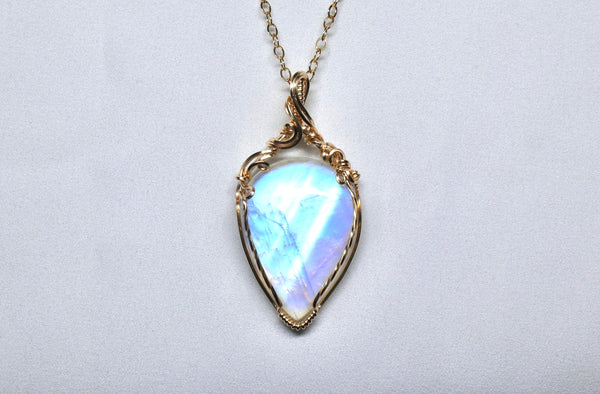 強藍光大月亮石藤蔓項鏈|14K注金|金色