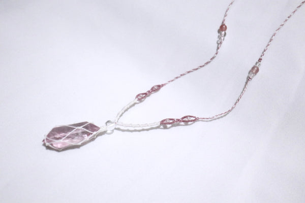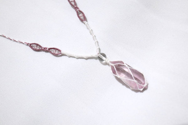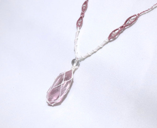 粉紅螢石網織幼蠟綫頸繩|白色X粉紅色
